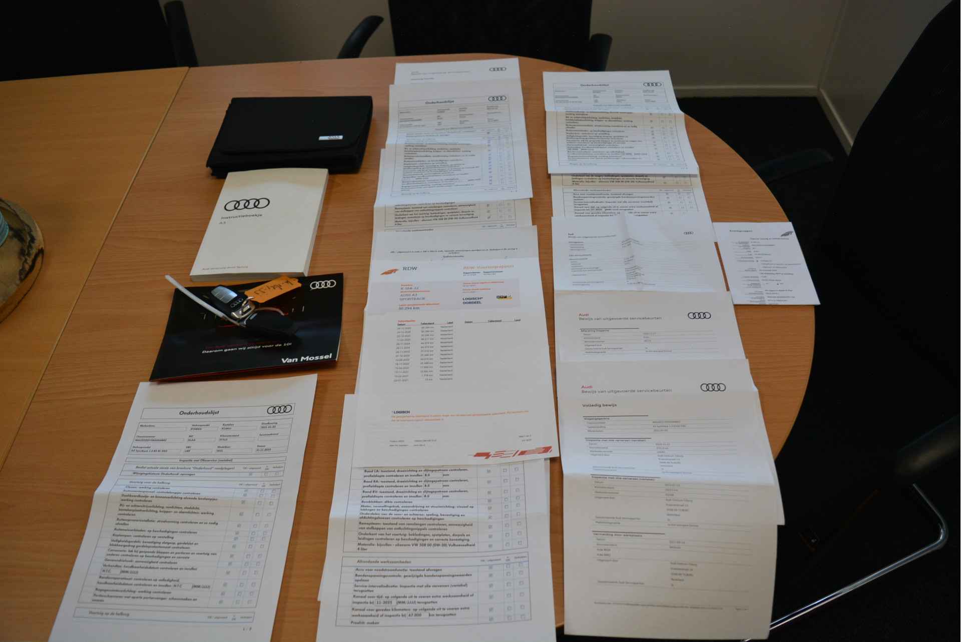Uiteraard is alle documentatie aanwezig, denk hierbij aan: Mapje, Instructieboekje, APK-Rapporten, Audi Vinklijsten, Audi Onderhoudsgegevens, Dubbele Sleutels en de kloppende Nationale Auto Pas.