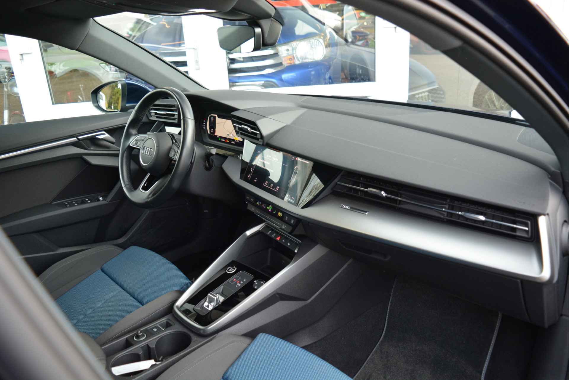 Betreft een niet van nieuw te onderscheiden en Audi Dealer onderhouden Audi A3 Sportback in de mooie kleurstelling Navarra Blauw.