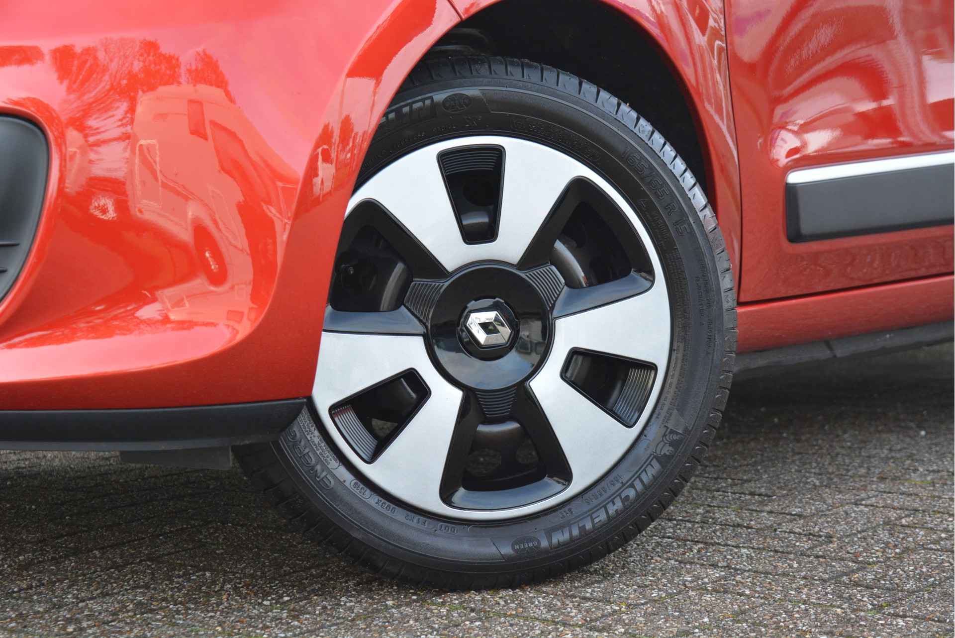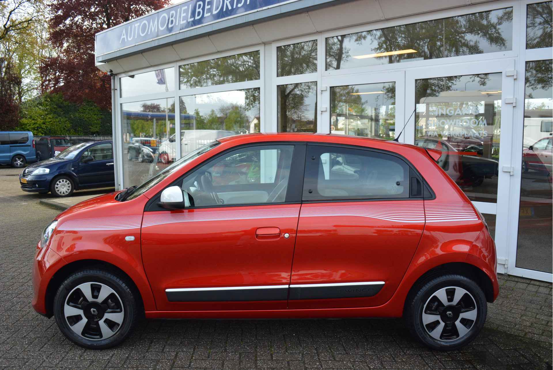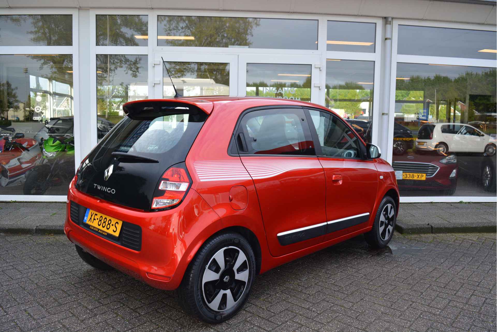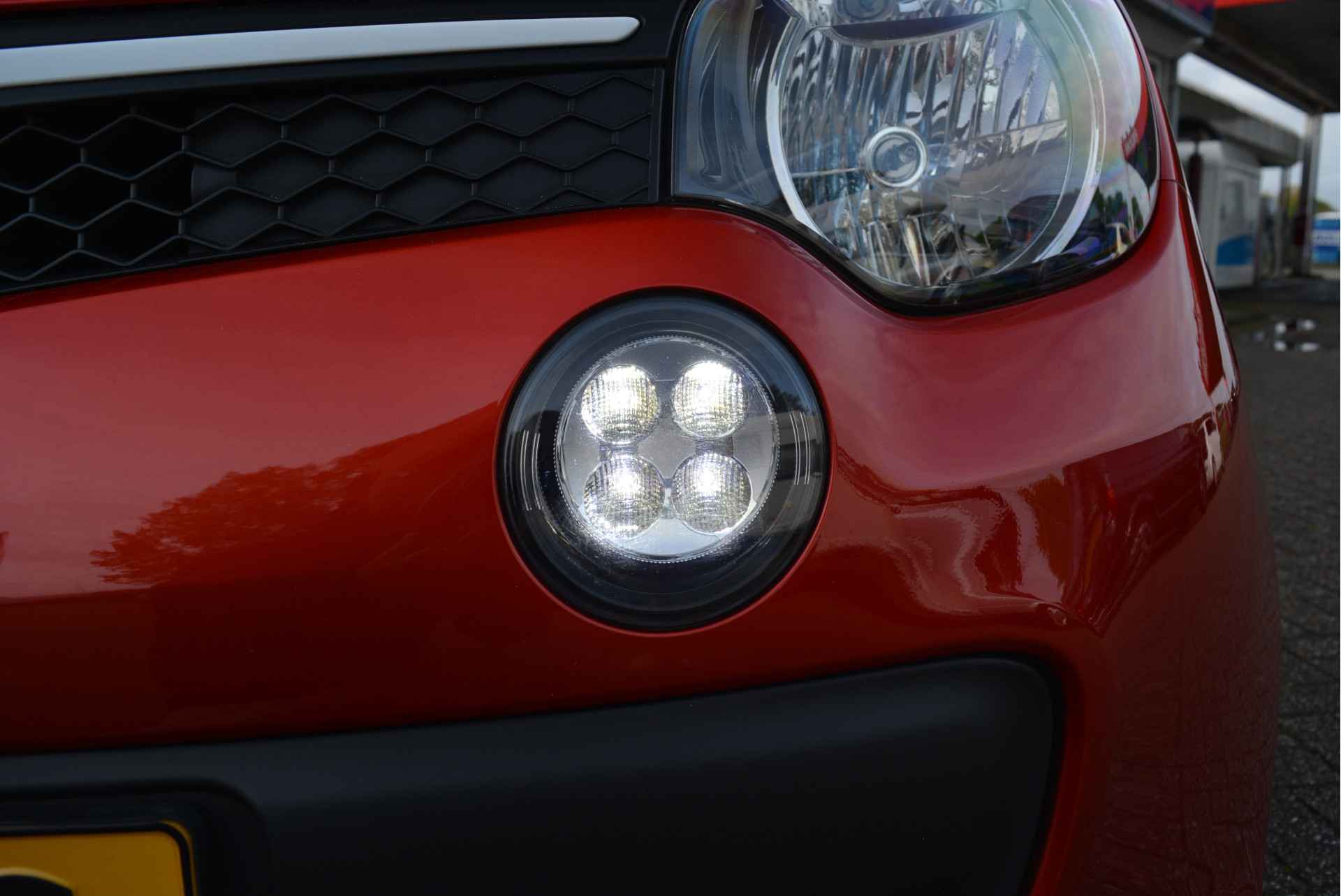 Deze origineel Nederlands geleverde Twingo is dankzijn haar mooie Rood Metallic lak en Witte Accenten een lust voor het oog welke afgemaakt word met Hoogglanszwarte Accenten.