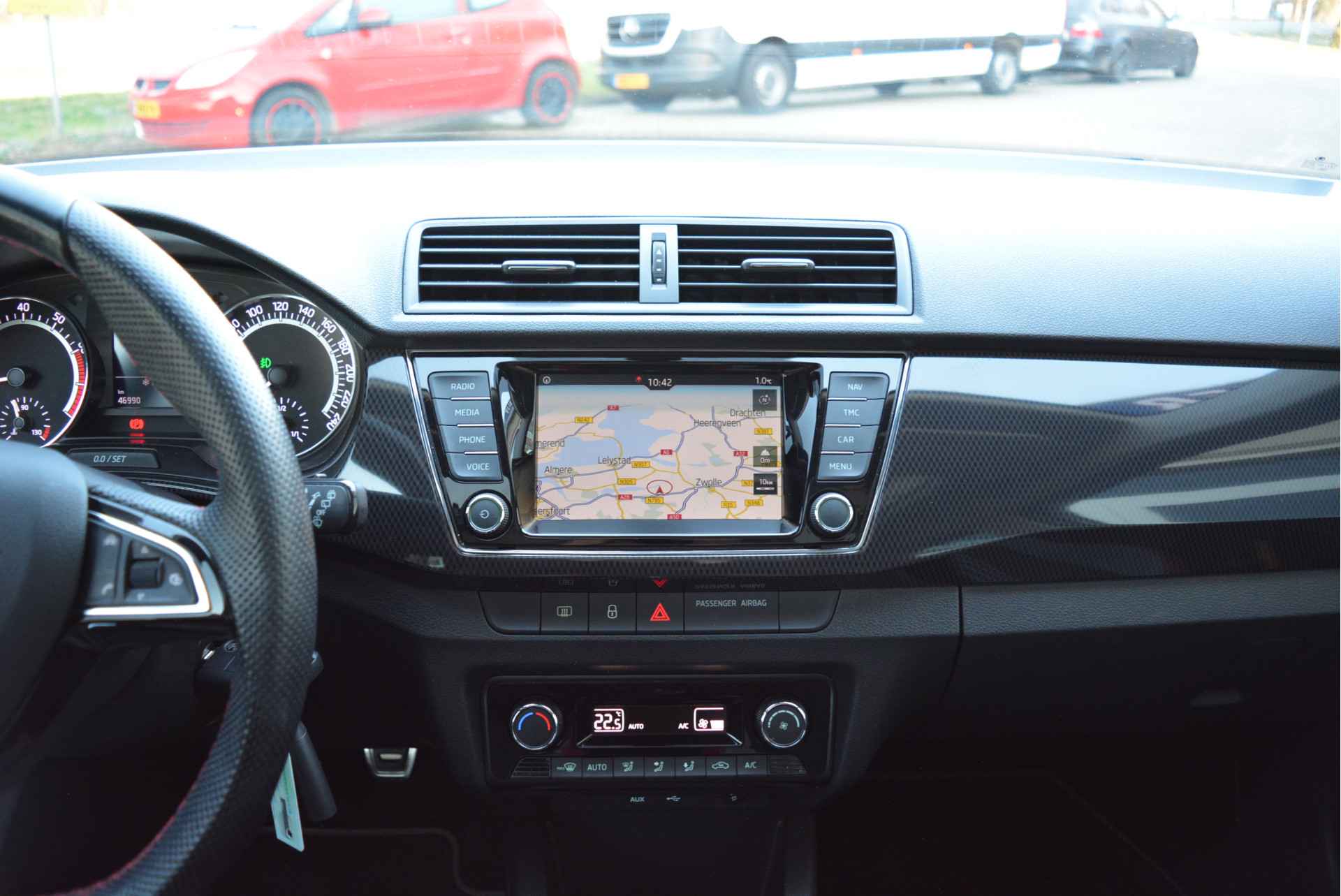 Betreft een niet van nieuw te onderscheiden origineel Nederlands geleverde Skoda Fabia Combi Stationwagon welke dankzij het Monte Carlo pakket over veel en leuke extra's beschikt.
